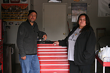 Marcos and Lisa Zaldivar, an Alaskan native family, pictured standing with just some of the tools that were transported to Mr. Zaldivar's new job location.