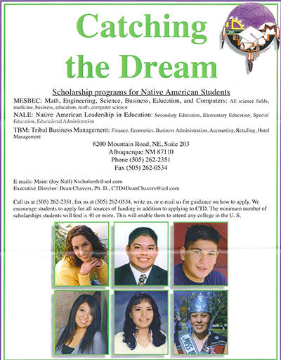 "Catching the Dream" Scholarship Programs for Native American Students flyer.
