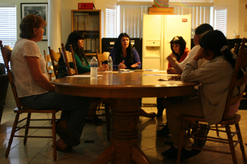 This picture was taken as Chairperson Silvia Burley and Project Director Randy Yonemura were in deep discussion over an issue that the California Indian Water Commission is currently involved in. Clockwise from left: Colleen Pringle, Financial Administrator, California Valley Miwok Tribe, Anjelica Paulk, Council Member, California Valley Miwok Tribe, Silvia Burley, Chairperson, California Valley Miwok Tribe, Rashel Reznor, Secretary/Treasurer, California Valley Miwok Tribe, Mr. Randy Yonemura, Project Director, The California Indian Water Commission and Mildred Burley, Tribal Elder, California Valley Miwok Tribe.