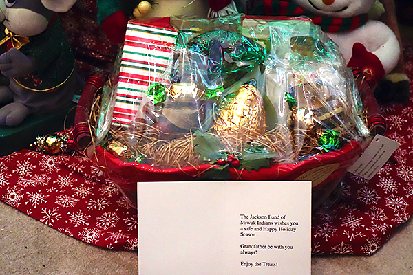 The California Valley Miwok Tribe (CVMT) received a holiday gift basket from the Jackson Band of Miwuk Indians (Jackson Rancheria) whom are located in Amador County, California.