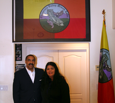 Mr. Montel Jennings, President / CEO at MLK Civic Council, pictured with Silvia Burley, Chairperson of the California Valley Miwok Tribe. Photo taken at the CVMT Tribal Office, 10601 Escondido Pl., Stockton, California.