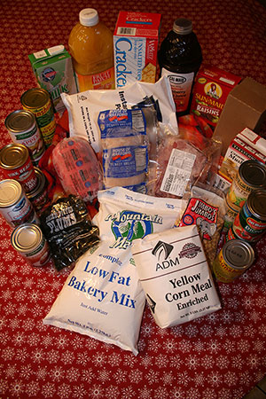 An assortment of USDA Food that recipients were happy to receive as the Thanksgiving holiday nears. Nov. 19, 2013 - USDA Food Distribution on Indian Reservations program.