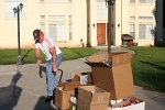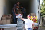 On Tuesday, September 18th, 2012, CVMT held its monthly USDA Food Distribution. Tiger Paulk, CVMT Tribal Staffer, assisted Tule River staffer Mr. Ronald Buckman and Mr. Jesus Salas load the carts with boxes of food for recipients to pick up. Attendees have expressed their gratitude for the USDA Food Program, especially since food and gas prices are climbing ever higher.