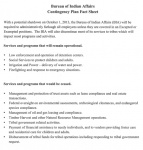 The Bureau of Indian Affairs Contingency Plan Fact Sheet specifies services and programs that would be ceased. Management and protection of trust assets such as lease compliance and real estate transactions, Federal oversight on environmental assessments, archeological clearances, and endangered species compliance, Management of oil and gas leasing and compliance, Timber Harvest and other Natural Resource Management operations, Tribal government related activities, Payment of financial assistance to needy individuals, and to vendors providing foster care and residential care for children and adults, and Distribution of tribal funds for tribal operations including responding to tribal governments request.